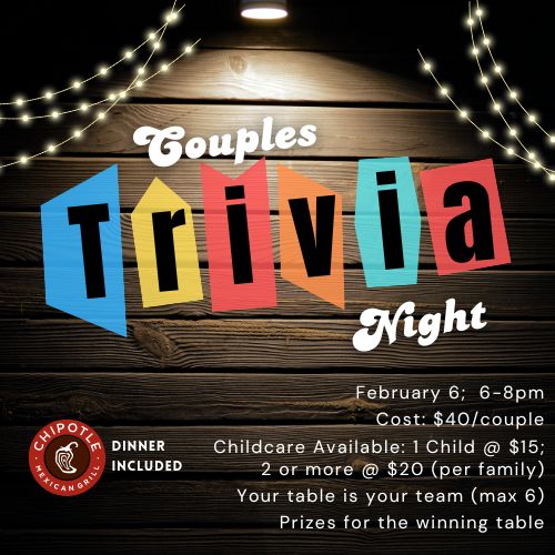 Again this year we’ll be hosting our Couples Trivia Night! Dinner’s provided… and child care is available! Get the details and sign-up HERE!